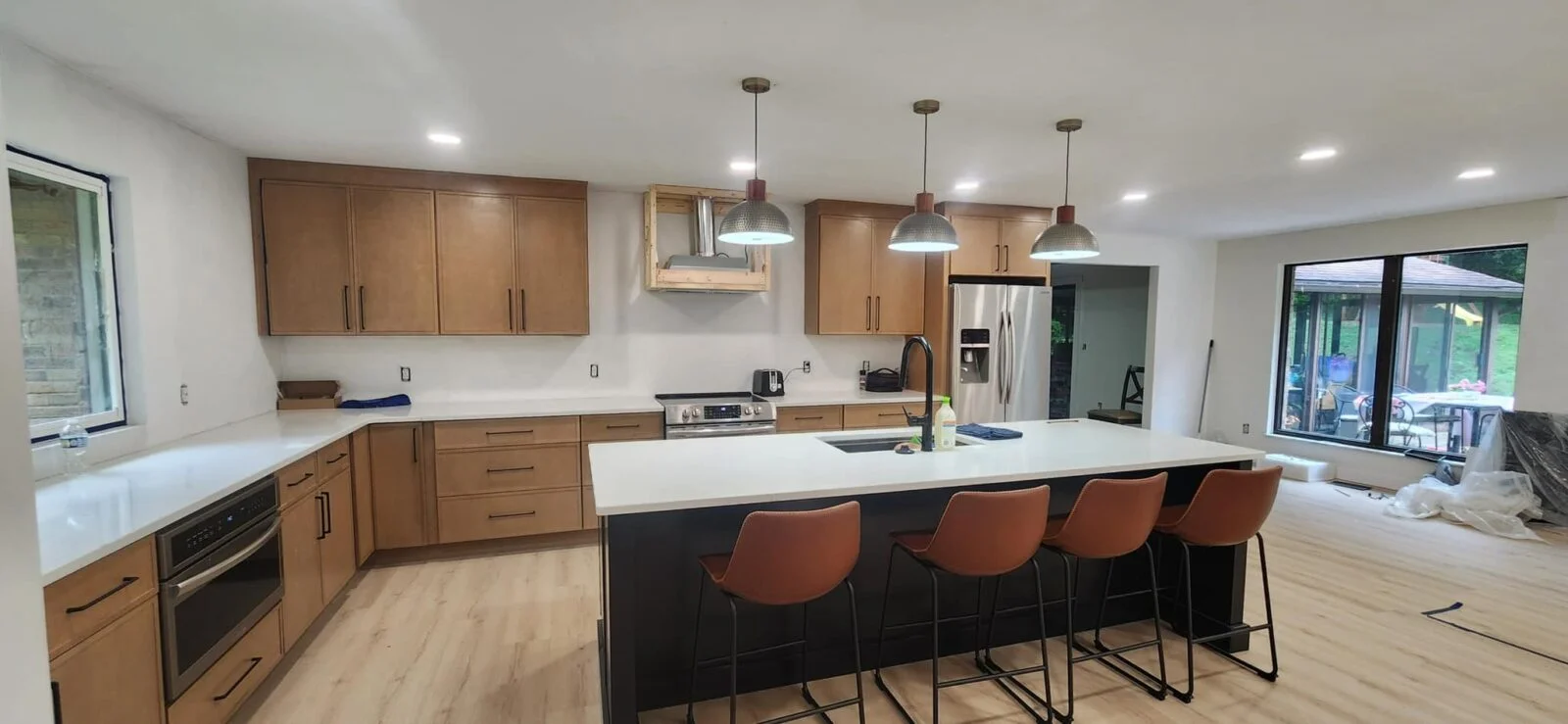 Timelines depend on complexity. A smaller update may take 3–4 weeks, while a full redesign with new cabinetry, flooring, and appliances could take 8–10 weeks. We provide a detailed schedule during planning and keep you informed throughout.